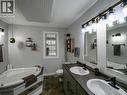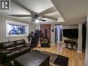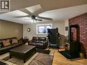 Warm, cozy, extensively renovated and very well maintained all come to mind here. This 3 bedroom 2259sqft home offers a bright living space, oversized garage plus a versatile flex room that could be a 4th bedroom. All this in an excellent location within walking distance to the new high school. The functional kitchen with stainless appliances and corner sink opens to a large bright dining area and cozy living room with gas stove, creating a warm open living area that feels both spacious and inviting. The basement features a rec room with pellet stove, perfect for relaxing or family movie nights. Main floor laundry, large mudroom entry, and central A/C add comfort. Major updates include vinyl windows, furnace (approx. 10 years), new HWT, and new roof (2025). Dual access to the massive deck overlooking the nicely landscaped fenced yard with large shed and covered storage, making it a fantastic space for entertaining or enjoying the outdoors. (id:27)